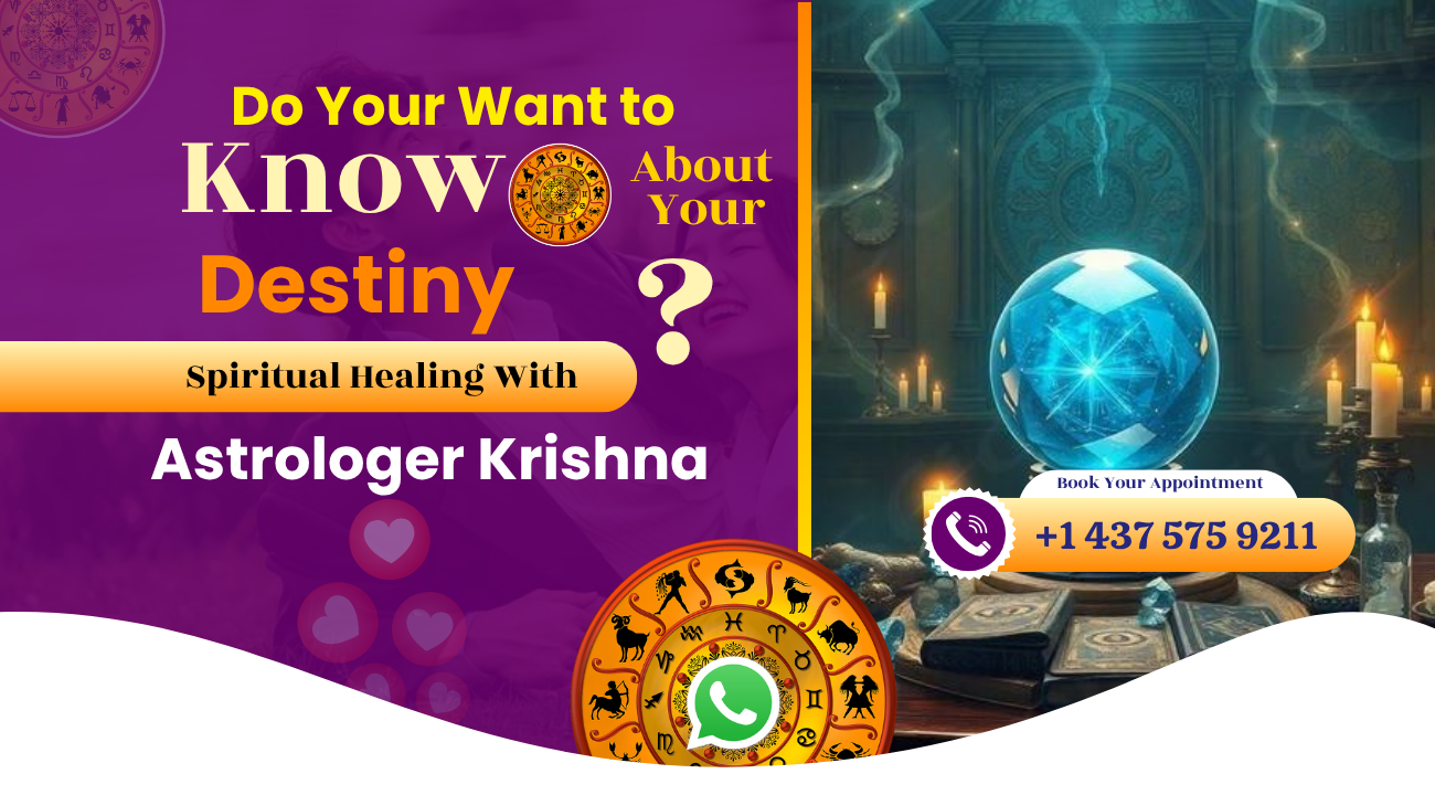Astrologer Krishna offers the best astrology services in Canada, specializing in love problem solutions, marriage compatibility, business success, career guidance, and financial stability. He also provides expert spiritual healing, negative energy removal, and black magic removal to restore peace and positivity in life. With his accurate psychic readings and horoscope predictions, Astrologer Krishna helps individuals find direction and overcome obstacles. His personalized remedies and deep astrological knowledge make him a trusted name for transforming lives with divine guidance.